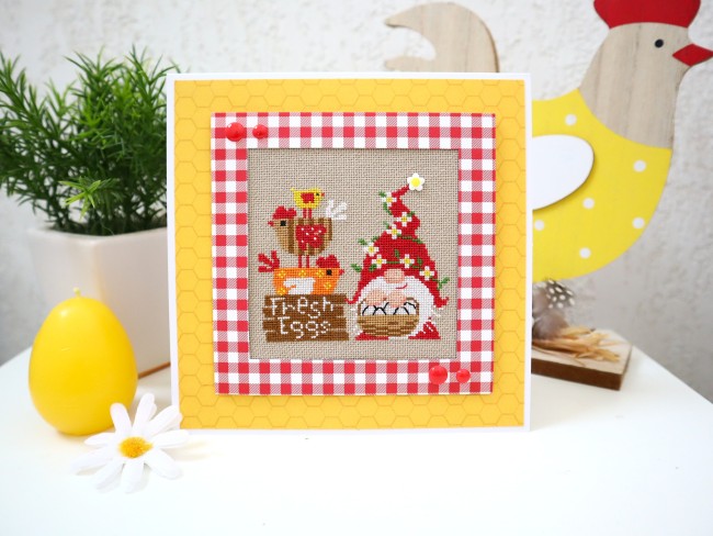 Carte brodée Pâques, gnome, poules, oeuf, fleur, broderie point de croix, scrapbooking, carte originale 3D faite main, Carterie et papeterie