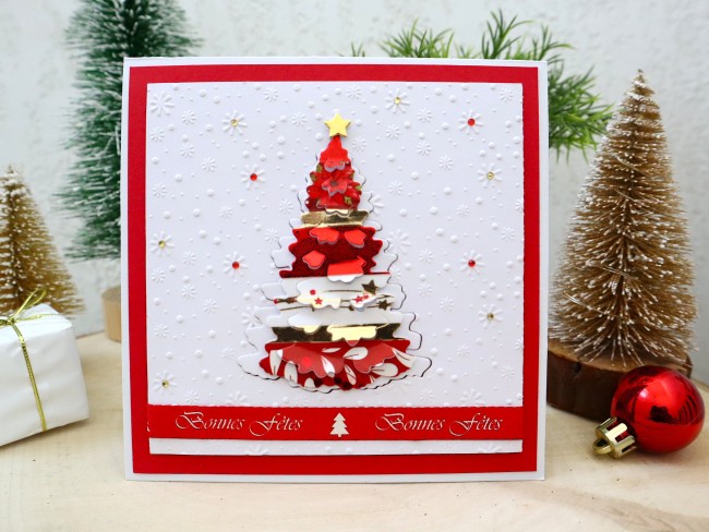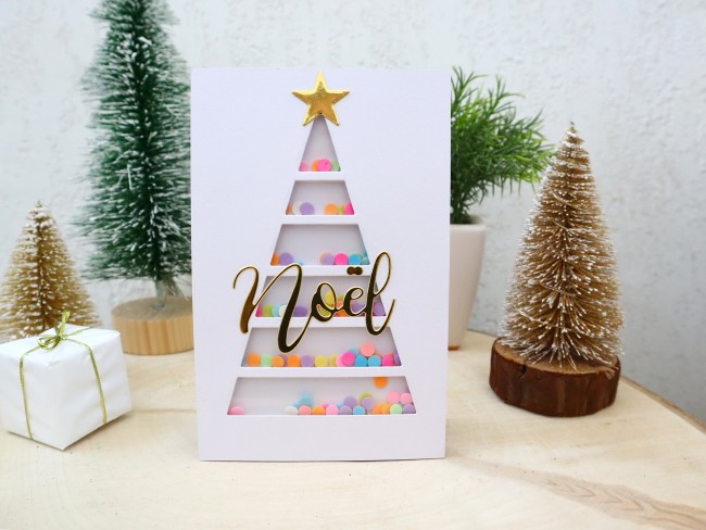 Carte de noël, Sapin de noël moderne, carte shaker, carte de voeux originale 3D faite main, Carterie et papeterie