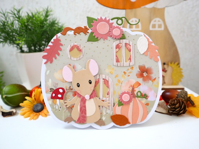 Anniversaire, carte toutes occasions, souris, maison citrouille d'automne, carte originale 3D faite main, Carterie et papeterie
