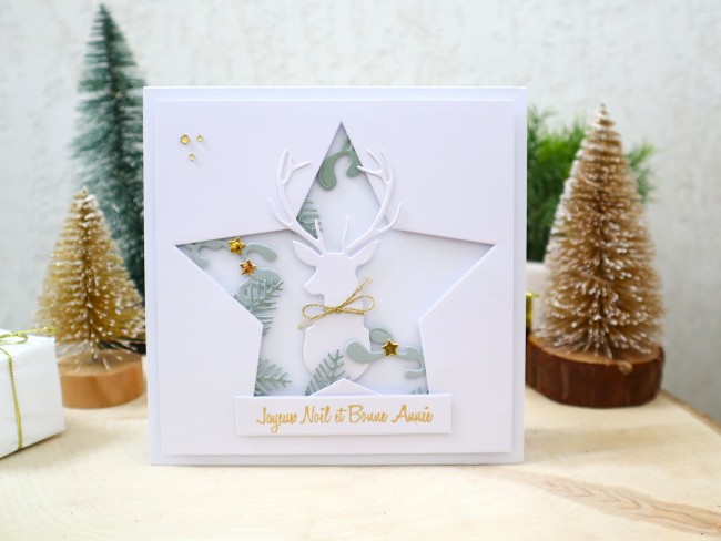 Carte de noël, étoile, cerf, Carte de voeux originale 3D faite main, Carterie et papeterie