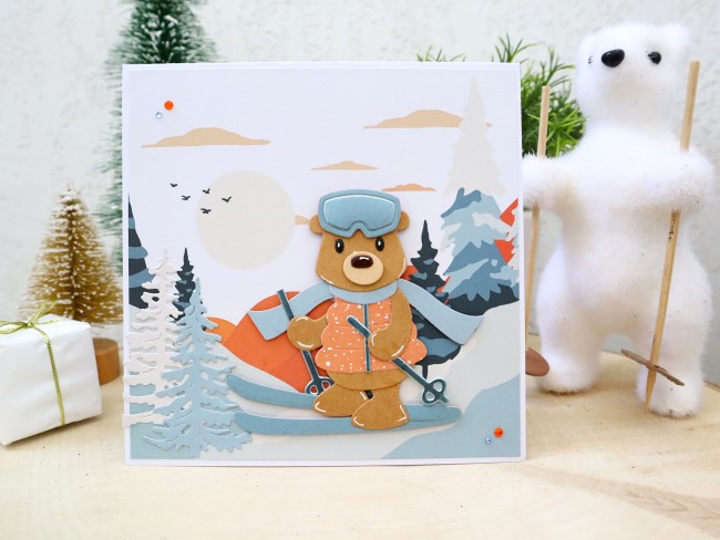 Carte de noël ou anniversaire ou toutes occasions, ourson, ski, sports d'hiver, Carte de voeux originale 3D faite main, Carterie et papeterie
