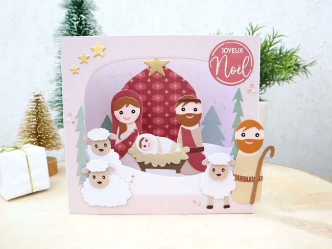 Carte de noël, Crèche moderne 3D, Nativité, Carte de voeux originale 3D faite main, Carterie et papeterie